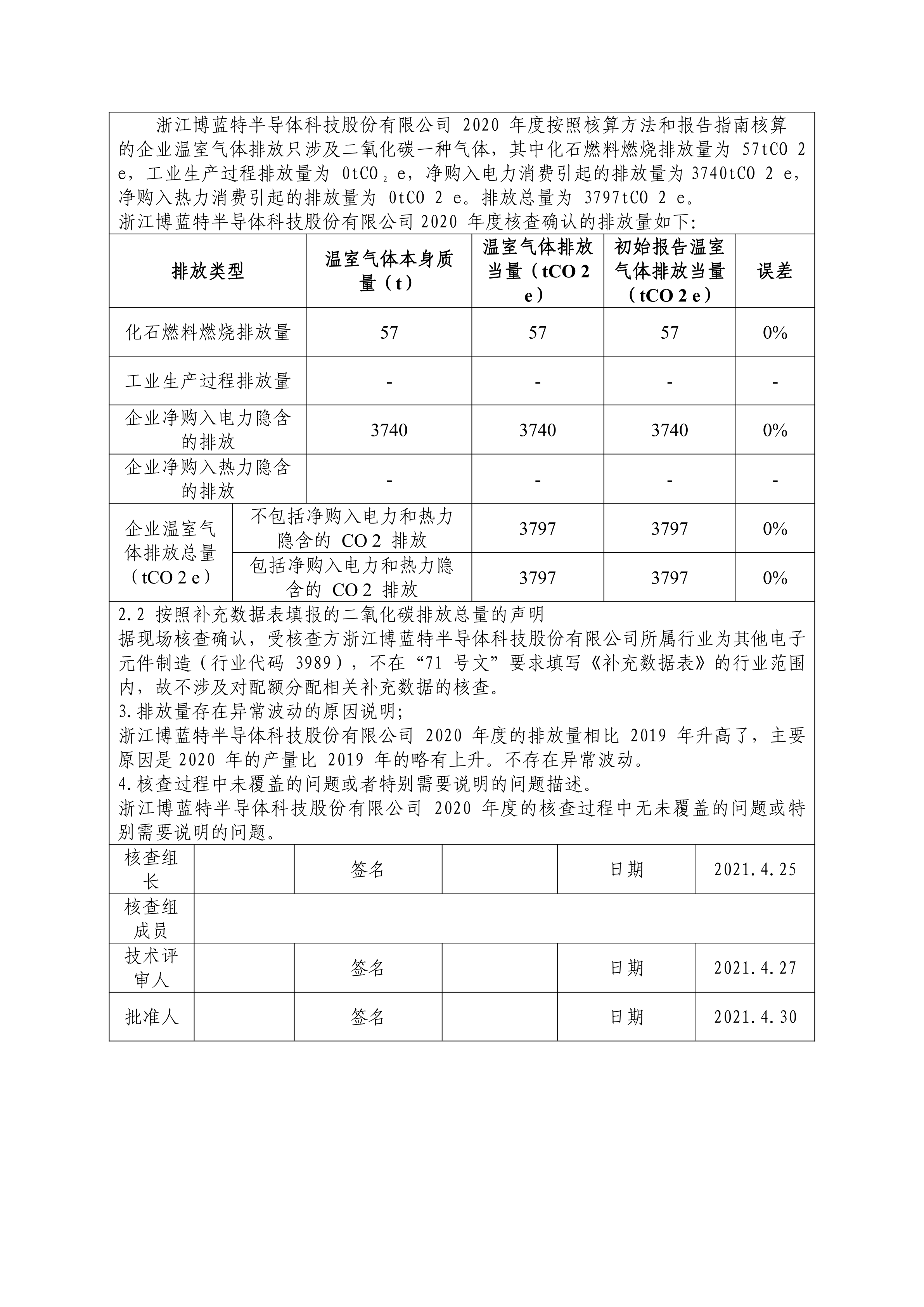 2020年博藍特溫室氣體排放核查報告