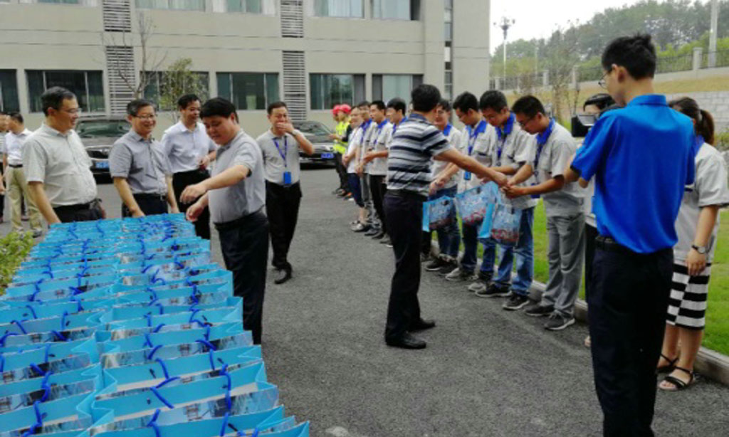 江書(shū)記親手為黃山工廠(chǎng)基層員工遞上各種防暑降溫物品,還叮囑企業(yè)員工要注意合理安排作息時(shí)間,做好防暑降溫,加強勞動(dòng)保護。